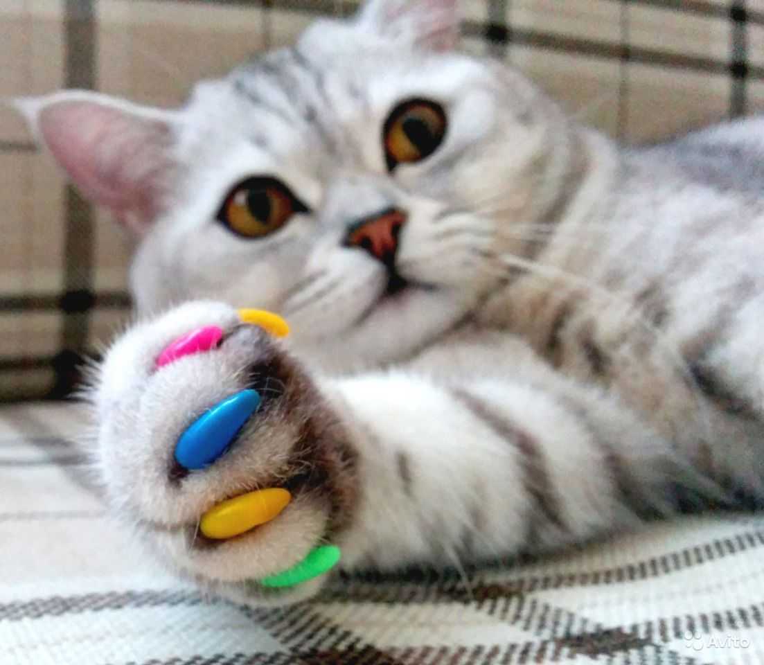 Более простой способ – надеть на когти антицарапки. Правда, далеко не факт, что этот метод сработает. Антицарапки представляют собой специальные защитные колпачки, формой похожие на когти кошек. Их надевают на когти передних лап и закрепляют клеем. Он, кстати, безвреден для питомцев. Такие колпачки могут продержаться порядка двух месяцев, а затем они сами отпадут вместе с верхней ороговевшей чешуйкой.