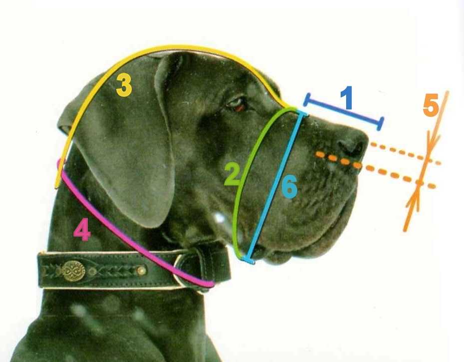 - длина морды, то есть расстояние от кончика носа до промежутка между глаз по верхней челюсти;