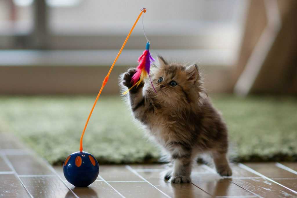 Заранее купите несколько игрушек. Многие кошки любят играть с «удочками», к которым привязаны бантики или перья, мячиками. Также пригодятся игрушки, внутрь которых можно положить лакомства. Проследите, чтобы в игрушках не было мелких деталей, которые животное может проглотить.