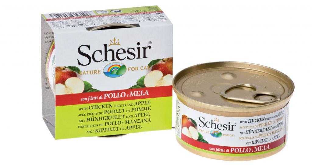1-е место. Не менее популярен в России производитель Schesir. Марка позиционирует себя как суперпремиум-класс, но все по своим характеристикам продукты намного ближе к сегменту премиум. В роли углеводов выступают ячмень и рис, клетчатки — мякоть свеклы, есть также растительные и животные жиры. Помимо этого в состав включен пребиотик и всякие антиоксиданты. Правда, стоимость продуктов довольно-таки высокая.