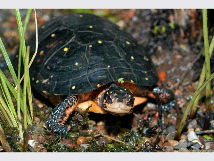 В природе красноухая черепаха, обитает в мелких озёрах, прудах и других водоёмах с низкими, заболоченными берегами.