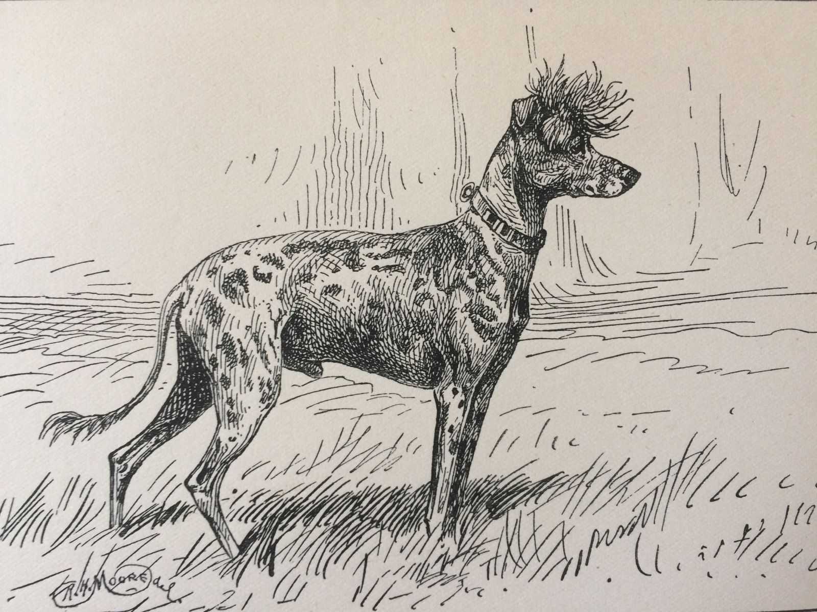 Китайская хохлатая собака 1900 года Оригинальный винтажный рисунок собаки