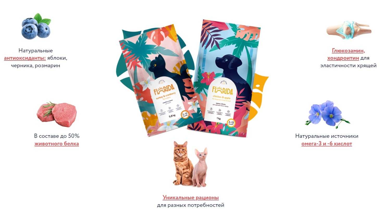 - есть корм и для взрослых особей, и для тех, кому еще не исполнился год.