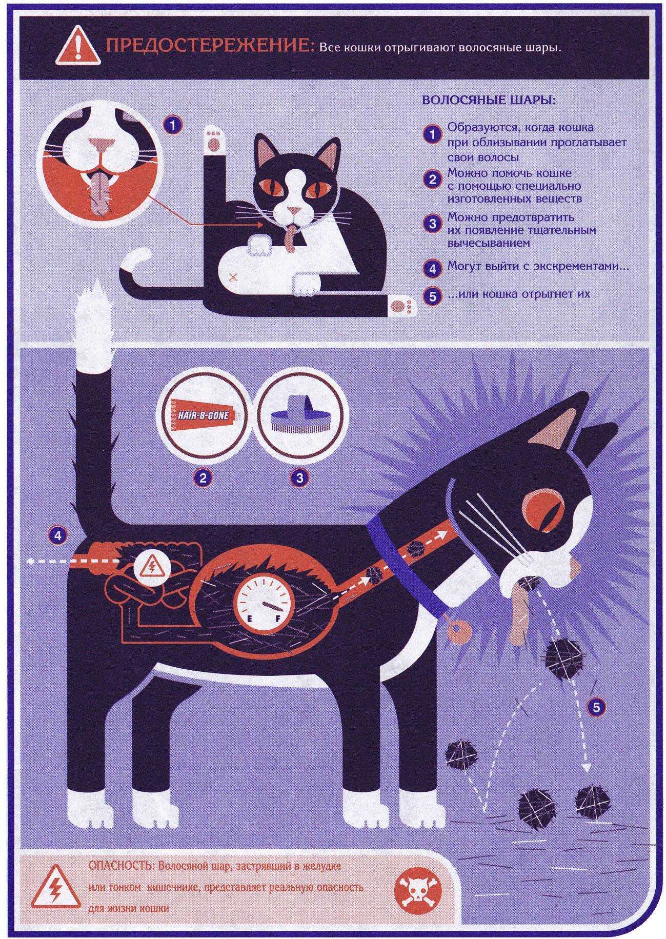 Ворсинки кошачьей шерсти не перевариваются желудком, плохо выводятся. Так как это животное постоянно вылизывает свою «шубку», волос собирается во внутренних органах пищеварения много