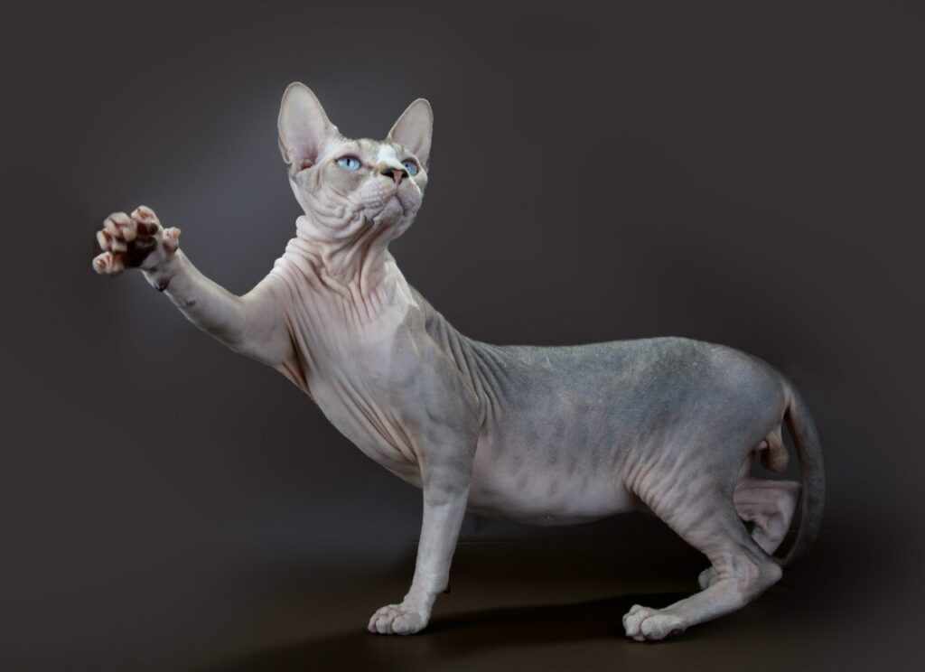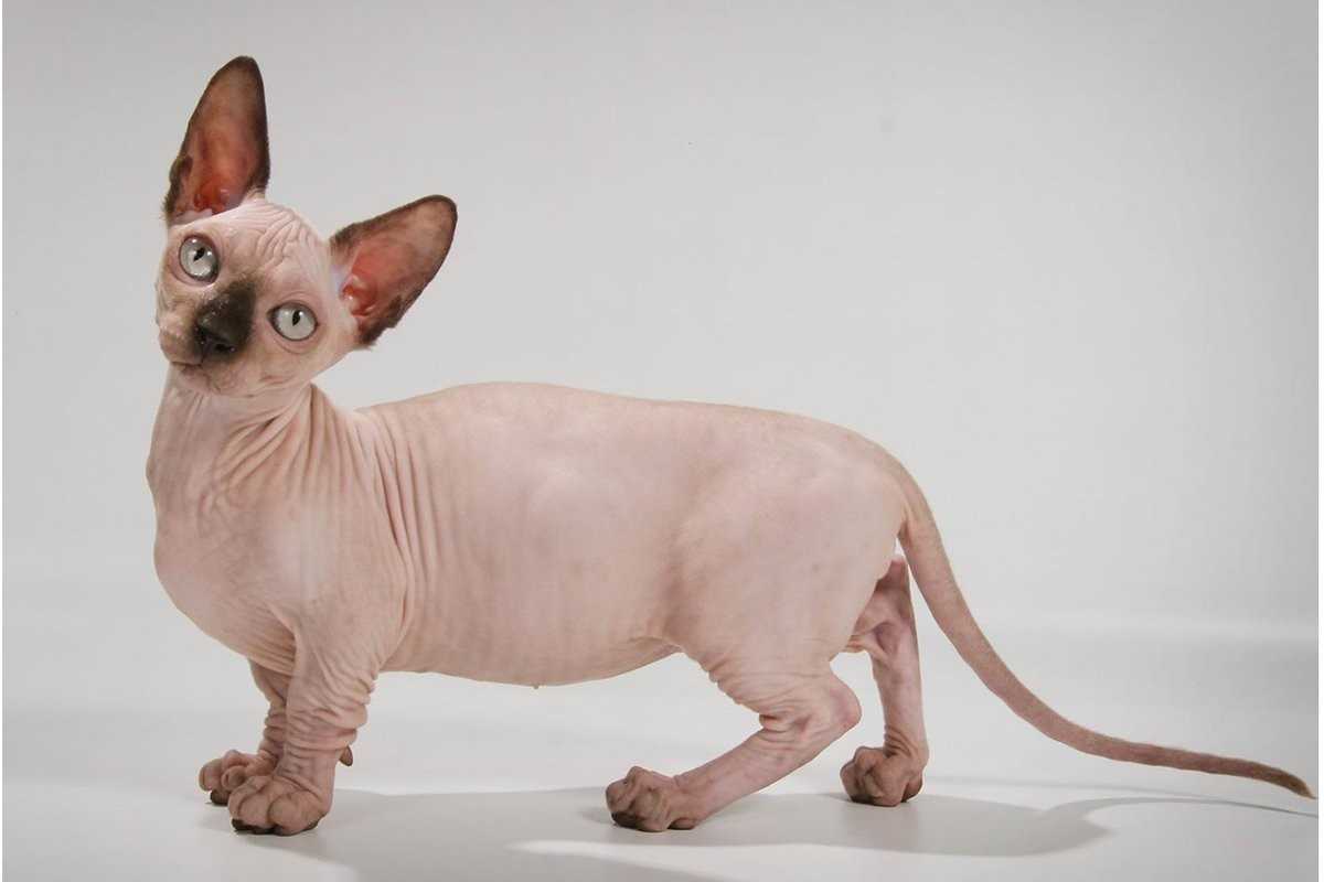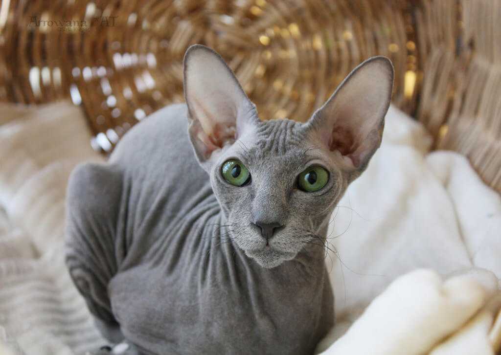 Еще один котенок, который не на 100% лысый, так как у него очень тонкий слой шерсти (с ним рождаются) длиной всего несколько миллиметров. Эти волосы не сопровождают его всю жизнь, но он теряет их на протяжении всей жизни. Как и с украинским левкоем, кожа сухая и не требует такого ухода, как 100% лысые кошки.