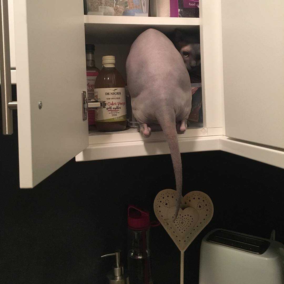 Кошка породы сфинкс очень любопытна как ребенок. В доме ею будет исследован каждый угол. Опасные вещи от нее стоит прятать подальше в недоступное место.
