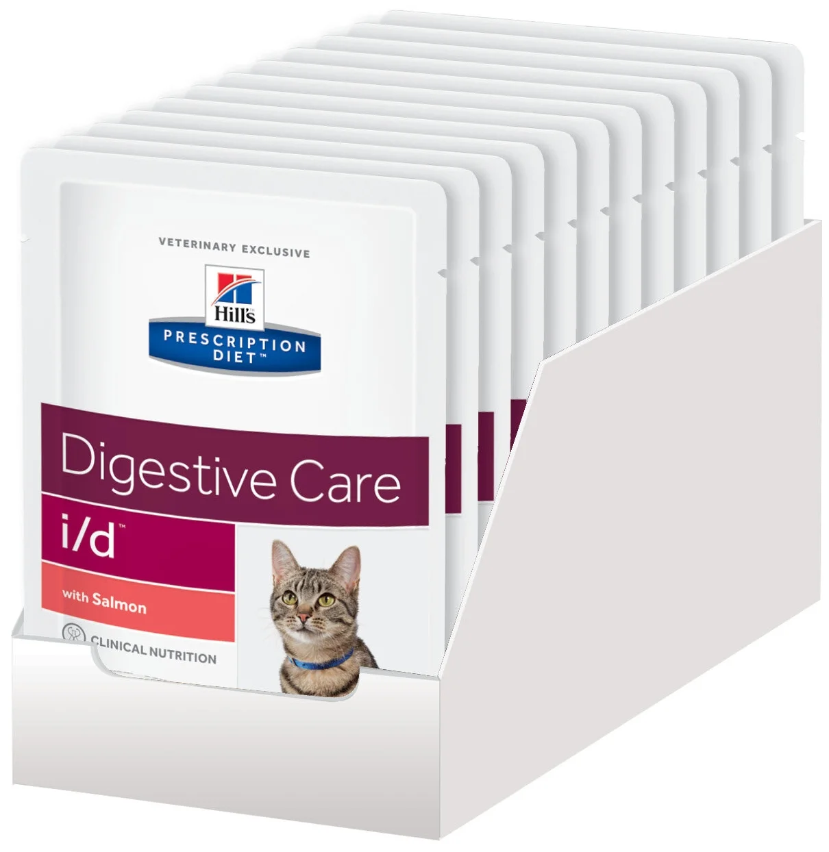 И последний на сегодняшний день влажный корм в рейтинге лучших на 2023 год — Hill’s Prescription Diet i/d Digestive Care с мясом лосося. Он выпускается в формате желе и кусочков в соусе, и рекомендован для кошек всех возрастов (в том числе для котят старше трех месяцев), у которых явно прослеживаются проблемы с пищеварением. Это может проявляться в виде частой/постоянной диареи (при подтвержденном отсутствии кишечных инфекций и глистной инвазии), запоров, рвоты и угнетенного, болезненного состояния питомца в целом. Класс используемых ингредиентов — премиум.