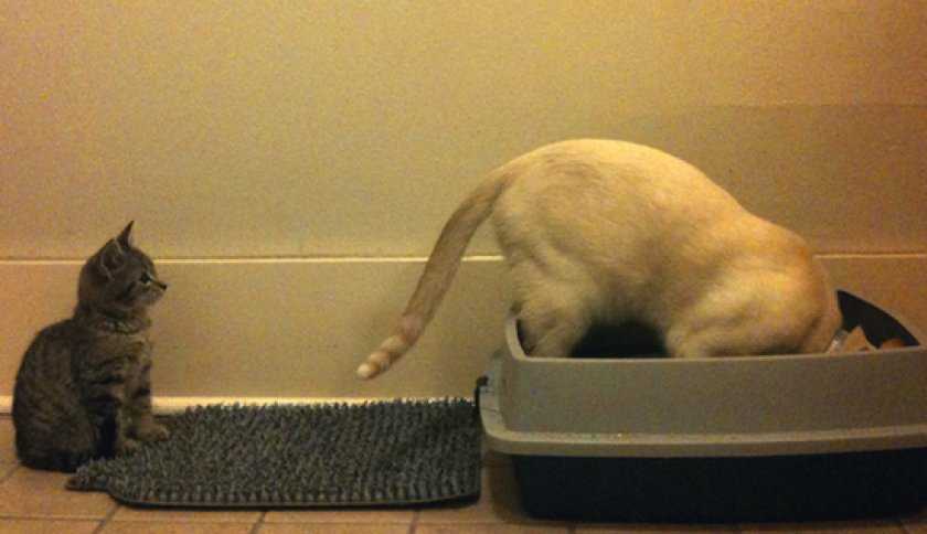 Поэтому кошачий лоток переносят туда, куда питомец не доберется. Если песик маленький, горшок переставляют на возвышение. Можно купить туалет с дверцей или приучить мурлыку ходить на унитаз.