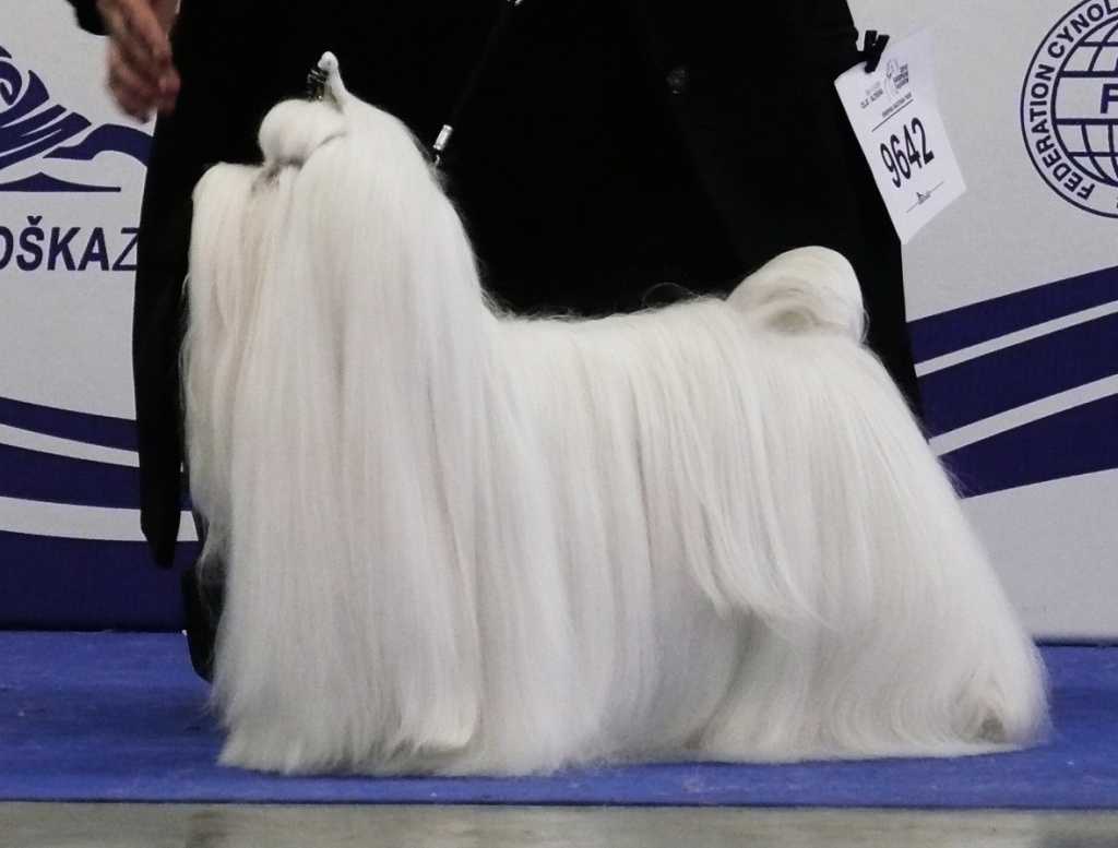 Конструкция напоминает бигуди. Благодаря этому волосы не соприкасаются друг с другом и не касаются земли. С такой прической выставочные собаки проводят большую часть дня, их снимают только на ночь. Перед рингом же шерсть наоборот расчесывают, выпрямляют утюжком для волос и опрыскивают спреем, придающим блеск.
