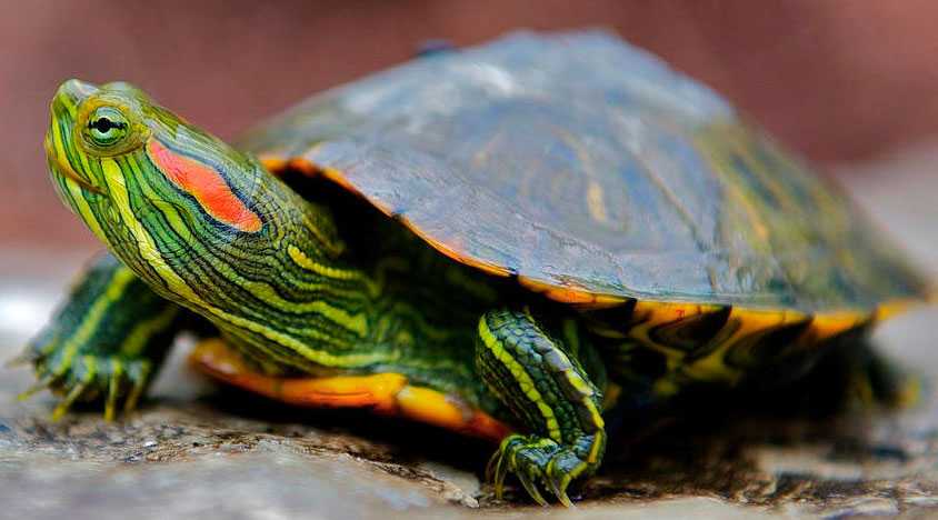 Красноухая черепаха – универсальный домашний любимец, часто встречающийся в городских квартирах. Живет эта порода преимущественно в воде, почему нуждается в организации водного террариума, однако на прогулки на суше соглашается с не меньшим удовольствием.