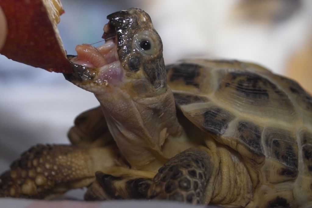 Перед тем, как кормить, дайте возможность черепашке хорошо погреться, что способствует улучшению пищеварения.